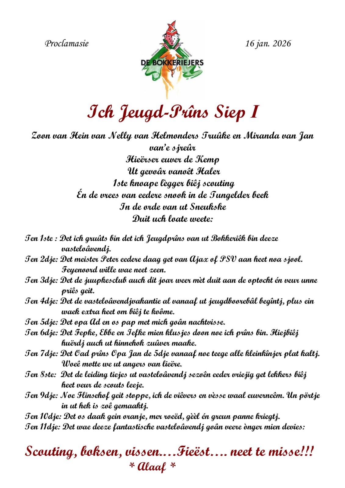 "Scouting, boksen, vissen.…Fieëst…. neet te misse!!!"
